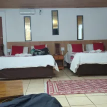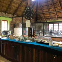 na de vlucht hier de eerste overnachting gehad. werden door Johan opgehaald met zijn bouwvakkershelm op met zwaailicht, kon je dus niet missen. kamer 14: groot, niet schoon, gehorige kamers. we konden precies horen wat de buren deden. er stond een apparaat waar je iets te drinken en eten uit kon halen maar ondanks dat de briefjes op apparaat stonden wilde deze die van ons niet zodat we hongerig en dorstig naar bed moesten. ontbijt redelijk, geen ander beleg dan jam. 3 soorten brood. worstjes, spek en bobotie. koffie/ thee en vruchtensap.