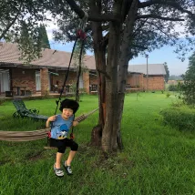Nous avons séjourné une nuit dans ce lodge près de l'aéroport.Un véhicule est venu nous chercher gratuitement à l'arrivée de notre avion. Nous avons eu une très grande chambre ( la chambre n° 20), très propre et bien équipée. Le cadre est agréable, il y a quelques animaux: antilope,duiker, autruches, pintades... Le soir, n'ayant pas de véhicule pour nous déplacer, la Direction a proposé de nous faire livrer un repas,ce qui est très pratique car les restaurants sont un peu éloignés. Le matin, le petit déjeuner était très copieux. Ce lodge est un endroit très sympathique où nous aimerions retourner, mais en été, pour pouvoir profiter de la piscine et des hamacs.