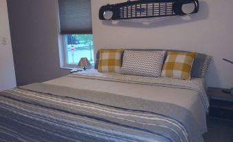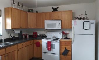 Take a step back into the retro 60s at "The Shop". Decorated with car parts, etc. from the 60s..focusing on '69 Camaro. Enjoy a view of The Des Moines river from the balcony & kitchen window. King size bed & full size bed will sleep 4. Full kitchen, living room, pub height dining area.. shower/tub combo in the bathroom & washer/dryer. Private entrance (there are 17 steps), key pad entry and off street parking for 2 vehicles, shed area for bicycles. Perfect place for a short term & get away stay. About pets:No pets allowed.About checkOut:Check out before 11:00 AM.About children:Children allowed: ages 0-17.There is not a baby bed furnished.About customRules:There are 14 steps..this is upstairs apartment.About checkIn:Check in after 3:00 PM.About smoking:Smoking is not permitted.There is outdoor area with designated bucket.About minBookingAge:Minimum age to rent: 21.About events:Events allowed: family gatherings and birthday parties.Maximum event attendees: 10,Up to 10 people including VRBO guests.