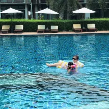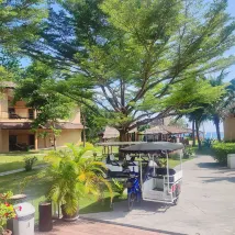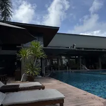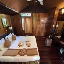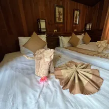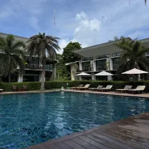 I enjoyed my three nights here. It was low season, so the resort wasn't too crowded, but the staff maintained professional standards. Everything smelled so nice - the linens and towels, and the room itself had a fresh fragrance. The cabin was very nicely designed with teakwood. The bathroom was clean and comfortable, and the side door of the bathroom led to an outdoor shower and drying area if you got sandy and wet from outdoor activities. The resort is nearby the walking street, where I went often, and also sports a full service bar and restaurant. On my last day, the staff drove me to the ferry departure site (during low season, the ferry departs on the other side of Pattaya beach).