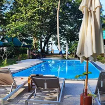 We booked one night here online and ended up staying for 4 nights. We are a family of 5 so had 2 bungalows, comfy beds, great AC clean bathrooms. Food on site great lovely pool to relax by in the day or relax on the beach front. We hired a Tuk Tuk through reception to explore Koh JUm. Loved it here nice relaxed atmosphere away from the tourist trap