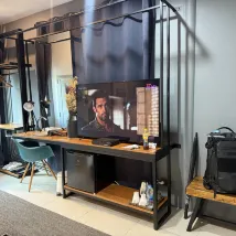 Well designed. Love this boutique hotel so much, and they are so caring too. They have comfortable slippers for in door and slippers for outdoor to the beach. Also, they have a bag with towels which you can take it to the beach, it's super awesome hotel, will stay again next time