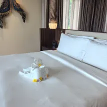 The housekeeping ladies clean the rooms three times a day, and they even drew a family portrait for us, which was such a nice surprise! Since we had some questions about the room type on the day of check-in, the front desk supervisor Ms. Bou explained everything to us patiently and professionally. What's more, we got an upgrade to two rooms on the last night, which made our experience absolutely perfect!