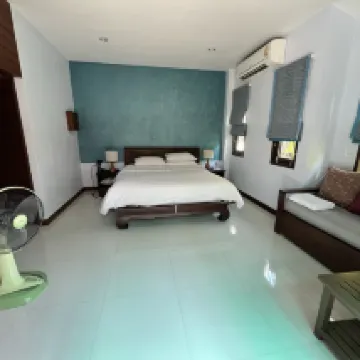 Dès l’accueil, vous sentez la gentillesse thaïlandaise, la personne présente à notre arrivée etait d’une grande sollicitude afin que notre séjour d’une seule nuit soit parfait. Elle avait réservé à l’avance des scooters comme je le lui avait demandé. Nous avions une suite avec 2 chambres où tout était parfait. Belle décoration, très bon équipement. Un petit coin cuisine parfait. Le seul hic est l’absence de piscine mais avec la plage à 5mn ce n’est pas gênant. Même si la rue est animée le soir, rien ne vient perturber votre séjour. Nous y retournerons c’est sûr !