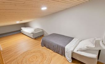 Wood-build cabin, completed in spring 2022, total area is 98 m². On the upper floor, two bedrooms, one with sliding door and two beds attached into a double bed, the another bedroom has separate beds. On the upper floors open loft (13 m²) 4 beds; two box spring beds attached into a double bed and two separate beds. On the ground floor, kitchen with high-quality appliances + living room with access to the terrace. Dining table for 8 people. Washroom with shower, WC and washing machine, also separate WC. Access to the sauna (including electric sauna stove) from the washroom via small terrace. There is plenty of storage space for clothes and a drying cabinet for equipment in the lobby.