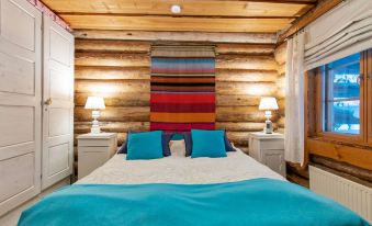 40 km north of Kolari, lake Äkäslompolo 1,5 km, swimming beach 3,5 km. Log cottage, built 2004. Livingroom/kitchen with extendable bed sofa, one bedroom with two separate beds, loft with 4 separate beds and bedsofa, electric sauna, bathroom/toilet. Storage with ski maintenance stand and infra-red heater. Wifi ( password in cottage manual). Log cottage located in the Äkäslompolo village Kaulavaara area (address: Kaulavaarantie 17). Apartment is located in a peaceful and neat cottage area near the skiing tracks. In addition: iron and ironing board, hair dryer, water boiler, toaster, two TVs (LCD). No pets allowed. Prices include final cleaning, bed linen available for rent.
