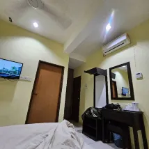 bilik penuh pepijat..berhabuk..cadar penuh darah2 bertompok-tompok bekas orang kena gigitan pepijat..cadar dan sarung bantal tak tukar berhabuk..bilik kotor..ada rambut atas lantai..habuk banyak..air conditioning sejuk..channel tv tak banyak pilihan.. bilik ok luas je.. kebersihan tolong lah baiki.. memang teruk..