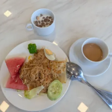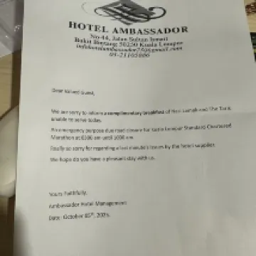 經濟平價酒店,位置是很方便,牆身插蘇头不足,有設早餐,2天早上8:30am, 不見人用餐,但見窗邊及餐廳前台有小小小螞蟻遊動,沒有味道的咖啡, 這是昨天選的早餐,希望多加注意衛生,相信酒店想盡力做好,努力加油! 如果照廣告介紹$25自助早餐,這樣水準一切不會來吃,我見到也不想拍照,房價平也不多要求! 如果酒店方想提升级數,定必要改進,否則難有回头客! 建議在KLCC 內有一餐店好味,許多人排隊,價錢合理不貴,大家可試下