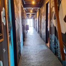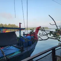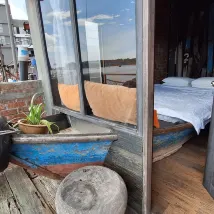 此住宿位於乘船遊覽碼頭的旁。沒有招牌,所以找到 Kang Kao 餐廳,它就在 G 樓。我預訂了一間有雙層床的家庭房,卻發現沒有窗戶。嘗試撥打住宿電話,但兩個電話號碼都不起作用。最後透過他們網站提供的電子郵箱給他們發送了電子郵件。設法換了有陽台的房間。房間很簡單,沒有電視,也沒有 WiFi。淋浴是開放式的,提供熱水。