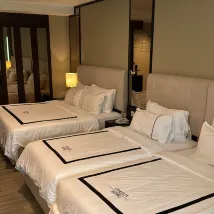 Both my friends and I booked separately for different types of room. Supposedly my deluxe king should be better than my friend which is superior king. But was given a room at second level with urine smells in my toilet and room was not properly cleaned and dusty. But surprisingly my friend was upgraded to deluxe king with much better cleaning on third floor than me?? Just because she checked in before me? Checked with reception and requested to move to much cleaner room, regardless of the view outside. And was changed to same number of room on the second floor. On the second day, shower bath and shampoo was not refilled. Requested on the third day before check out few times yet didn’t receive after we checked out the hotel. I didn’t take pictures of my complaint given that the hotel location was great and lobby area was impressive. Hopefully the cleanliness will improve and room was properly maintained and reserved and allocated for guests.