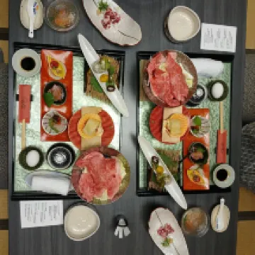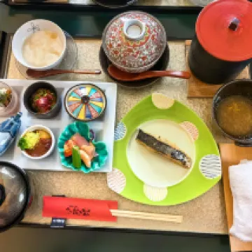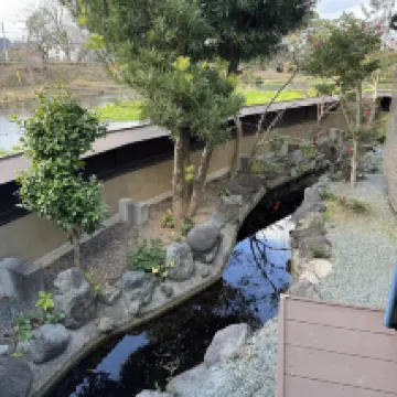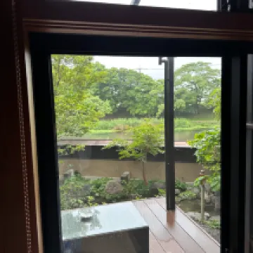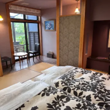 It's a short walk from the tram station along the river so it is easy to get there. If you have a big luggag you'll need to drag it with you though. We only have backpacks so it's not a problem for us. We love the view from our room! The meals were spectacular & the service was fantastic. The host is friendly and helpful. We love our time spent there very much. It's one of our highlights in Japan.
