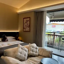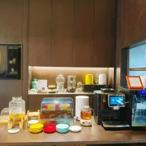 房間很大氣,雖然設計是屬於那種比較保守的風格,但是一點不影響她的美觀,從軟裝到硬裝都很高端。性價比超級高,這種價格能住這麼好的酒店麼也是可以了,前台管家很好,和和氣氣的,而且也基本做到有問必答了,店裡配有自助的咖啡機,飲料茶水水果甜品和小零食。還是挺有趣的,主要是他們有一個超大的院子,還有小童滑滑梯。房間裏的陽台是觀景的,視野覺了,還看了她家其他的房間,都挺有特色的,以後如果來昆明還是會選擇他們家的。