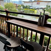 酒店外觀設計古典鳳格,這間在三樓窗外即可看到街麪休閑愜意,夜間安靜,床品舒適和衞生間乾淨,位於融創後海周邊環境古風,交通方便,靠近滇池等景點,服務貼心。