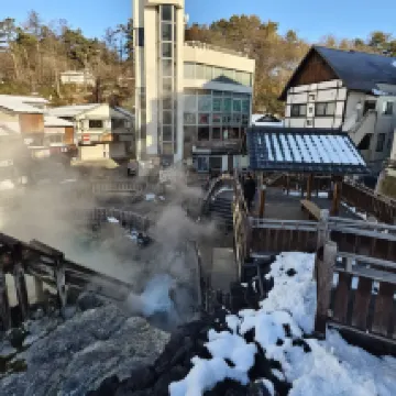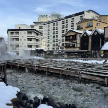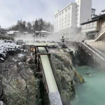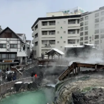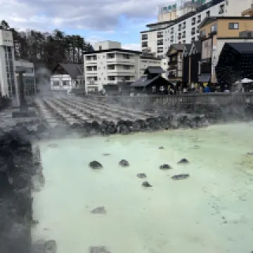草津温泉大東館位於温泉的中心區域出門即是湯畑温泉。賓館離巴士總站很近歩行約5分鐘左右即到。小鏌的温泉饅頭很棒,值得品嚐。賓館有點年代感但是地方位置絕佳。