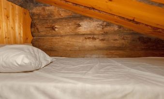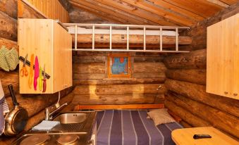 25 km north of Kuusamo, lake Rukajärvi, small, comfortable log cottage, built 2012. Vuosseli (Eastern Ruka) 5.5 km, Ruka village (Western Ruka, Central Square) 6 km, Lake Rukajärvi 40 m, deep rock bottom beach. Wood heated sauna, the lower bed (120 cm),the upper bed (80 cm). Small kitchen/living room. Small log cottage situated by Lake Rukajärvi.