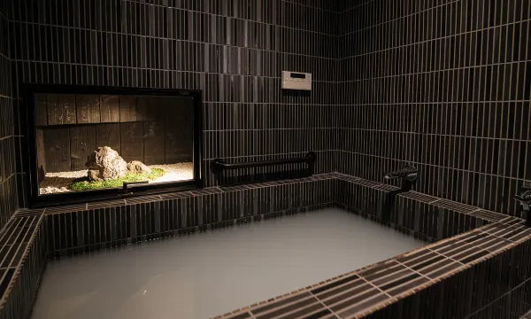 在飯店的免費溫泉內放鬆身心。