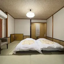 一家很有趣的日式旅館,雖然價格略貴,但是住起來非常舒服和滿意 旅館特色: 1 純日式的房間,空間是很夠的,日式的小庭院也很別緻,空調熱水電視,免費的零食泡麪,以及每天兩次水果(蜜瓜和香蕉) 2 最最重要的,這裏每週六的晚上都有日式舞*表演,是老闆邀請過來的,還會跟藝伎互動玩遊戲,以及最後很多人都走了,還受邀一起唱了卡拉OK,和各國友人一起,體驗感非常棒! 社長很有趣,應邀表演了日本歌曲,服務的人員也都特別好,非常推薦來這家!