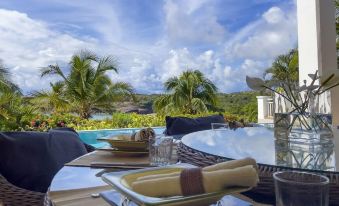 Nestled in a private and upscale residential community on the southeast cost of St. Lucia, Mango Villa is a spacious and well-appointed 4-bedroom seaside retreat. The mere 20-minute drive to the international airport and shopping area in Vieux Fort, the villa offers a contemporary look with European furnishings. The calming sound of the Atlantic waves crashing against the nearby coastline adds to the tranquility and serenity, particularly when lounging outdoors or in the pool. The Villa is fully air-conditioned; but the open layout allows for the cool breezes to flow freely throughout. Additionally, the pool area and upper floors offer stunning views of Canelles Bay. The Villa features 4 luxury bedrooms - each with en-suite bathrooms, and King-sized beds, a fully equipped gym with studio for yoga and stretching, an open concept kitchen, dining area, and a large family living room which leads to a terrace. Outside, you can enjoy the views from the terrace with loungers, dining table, a grill, a pizza oven, and a beautifully laid out pool surrounded by stunning garden and ocean view. The villa provides a dedicated workspace and entertainment system, as well as internet access. Fancy a Pizza Night? We can reserve a Pizza Chef just for you!