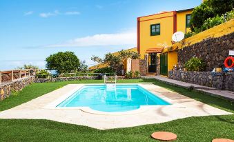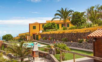 La Orotava: Beautiful, rustic house "Camino La Candelaria". Outside the resort, on a slope, 6 km from the sea. For shared use: property 20'000 m2 with lawn, orchard, beautiful garden to relax, swimming pool (7 x 4 m, depth 120 - 150 cm, seasonal availability: 01.Jan. - 31.Dec.). WC in the pool area, outdoor shower, poolhouse with fridge, garden furniture, barbecue. In the complex: WiFi. Parking on the premises. Grocery 300 m, restaurant, bus stop 20 m, sandy beach 6 km. The owner does not accept any youth groups. Please note: main road 50 m from the property. Additional accommodations can be booked. Sun terrace 20 m2. Outdoor kitchen with 4 hobs. The property has a panoramic view of the Teide and solar energy. In this property it is possible to hire in advance wedding planner service, communions, birthdays and events in general (everything is extra and on request). 3-room apartment 130 m2, on the ground floor. Simple and rustic furnishings: 1 room with 2 beds and electric heater. 1 double bedroom with 1 french bed and electric heater. Living room with open-hearth fireplace, satellite TV and international TV channels (flat screen), electric heating. Kitchen-/living room (oven, dishwasher, 4 ceramic glass hob hotplates, microwave, freezer, electric coffee machine) with dining table. Shower/WC, sep. WC. No heating option. Wooden floors. Porch 60 m2. Terrace furniture, deck chairs (2). Panoramic view. Facilities: washing machine (extra), safe, iron. Internet (WiFi, free). CR 38/4013 ESFCTU000038008000357738000000000000000000CR-38/40136