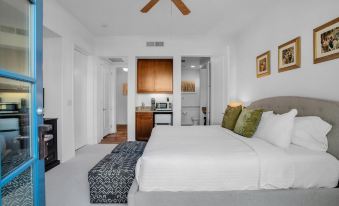 This exquisite lock-off studio has gorgeous remodeled flooring and decor throughout. This studio is equipped with a kitchenette and includes a microwave, mini fridge, Keurig coffee maker and standard drip coffee maker. It is fully outfitted with dishes and utensils, perfect for an extended stay. Enjoy streaming or watching cable on the large TV in the bedroom or enjoy the view of the beautiful community grounds from the private patio. The bedroom has a comfortable King size bed and the bathroom is outfitted with a walk in shower and a large soaking tub. This villa is located directly next to one of the more quiet satellite pools and is a short walk to the main pool.