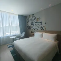 對於在是拉差尋找乾淨舒適住宿的客人來說,林查班假日套房飯店 (Holiday Inn & Suites Siracha Laemchabang) 是一個絕佳的選擇。 令人印象深刻的亮點: * 清潔舒適:客房乾淨整潔,維護良好,讓您倍感舒適,如同在家一樣溫馨。 * 便利設施:飯店提供難得的溫泉,讓您享受絕佳的放鬆體驗。 * 早餐:早餐種類豐富,包括泰式和西式菜餚。食物美味可口,品質優良。 * 服務:所有員工都熱情友好,提供真誠的服務,令人印象深刻,令人倍感溫暖。 * 絕佳視野:雖然靠近工業區,但客房視野開闊,海景一覽無遺。 * 地點便利:飯店位置便利,附近有便利商店,方便購買餐飲和日常用品。 注意事項: * 飯店位於工業區附近,因此可能會受到工廠噪音或活動的影響,但總體而言,不會對您的入住造成太大影響。 總結一下,如果你正在Si Racha尋找一家乾淨、服務好、有溫泉、早餐美味的酒店,那麼Holiday Inn & Suites Siracha Laemchabang是一個非常值得的選擇。