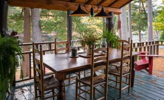 What could be better, a beautiful rustic log cabin on a lake with a classic back porch with a lounging area and dining table overlooking a beautiful small lake . Stayed 2 weeks and had a wonderful time. Can’t wait to go back again!