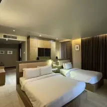 Excellent room spacious and in-room amenities. We love the bathroom (wudhu’ pipe), the spacious bathtub, the kitchen sink (clean up baby’s bottle etc.) without going to the toilet, the room layout, the view. Very nice 👍🏼🫰🏼