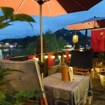 客店在嘉陵江畔。可依江遠眺錦屏山。看滔滔江水流過閬中城邊。夜間景色尤其美麗。閑暇時可坐㫠觀景品茶打牌娛樂。客店老闆,小妹貼心熱情。客店廚房可提供爐灶,廚具,滿足住店自己動手做美食的願望。