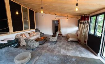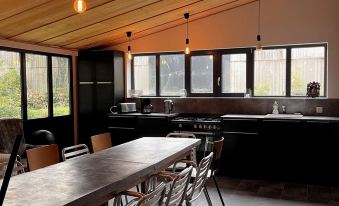 stone and wood house that can accommodate 12 people and fully equipped with a large kitchen with a very bright living room with its large glass roof which overlooks the Aber.