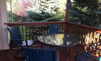 This home works especially well for extended families. The fully furnished home offers an open living/dining area with a gas fireplace, a quaint breakfast nook and kitchen bar (with live edge walnut top); as well as laundry, smart TVs, WiFi, and a covered deck overlooking the greenspace.(from which deer can regularly be seen). It offers 4 bedrooms on two levels and sleeping for 11(max 8 adults)