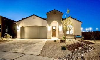 This fully-furnished modern home is perfect for weekend getaways or longterm stays. With a jacuzzi, gym & outdoor grill-zebo the Spicewood Villa offers the comfort of home with a luxury feel. Stream Netflix in front of the stacked stone fireplace, soak in the outdoor tub, or simply relax to the beautiful views of the Organ Mountains. This stylish space can be the romantic escape you're seeking or comfortably fit your group of 7. All this only minutes from all Las Cruces has to offer.About pets:No pets allowed, service animals permitted.About checkOut:Check out before 11:00 AM.About children:Children allowed: ages 0-17.About customRules:Do not put cleaners/chemicals of any kind in the jacuzzi. Don't mettle with jacuzzi chemical cartridges. If the jacuzzi is dirty contact the host..-Please use make-up removal wipes for make-up instead of towels,-No smoking cannabis inside of house.About checkIn:Check in after 3:00 PM.About smoking:Smoking is not permitted.About minBookingAge:Minimum age to rent: 18.About events:No events allowed.