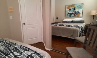Great location—close to airport (7 minutes) and about 13 from the *****. Nice neighborhood—great helpful neighbors. Park within 1 mile.
