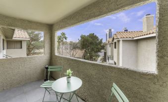 Enjoy a stylish experience at this centrally-located place, next to the Las Vegas Strip. This 2 bedroom with 2 full bathroom townhome is located - .5 miles to The Palms (walking distance), 1 mile to The Bellagio Hotel, 1 mile to The Rio All Suites Hotel, 1 mile to the Las Vegas Strip, and 1.9 Miles to The Allegiant Stadium (New Raiders Stadium). This place has a in-door fireplace, patio, 2 heated pools, a gym, and a club-house, to enjoy, and relax. Lots of free parking space for guests only.About pets:No pets allowed.About checkOut:Check out before 11:00 AM.About children:Children allowed: ages 0-17.About checkIn:Check in after 4:00 PM.About smoking:Smoking is not permitted.About minBookingAge:Minimum age to rent: 21.About events:No events allowed.