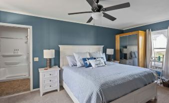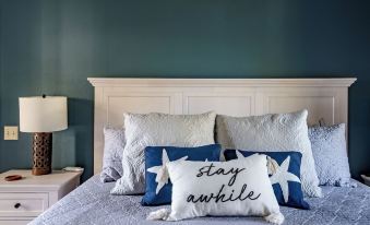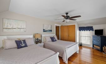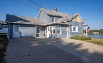With a fresh nautical look, this home fits perfectly in the edge of the Mississippi River. A great place for larger groups with charm and character of 3 bedrooms and 2 baths decorated for the river! The primary bedroom, with a king bed, is on the main floor with an attached bath. The other two bedrooms are on the 2nd level. The first bedroom has a queen bed and a twin bed. The second bedroom, with river views, has 2 double beds. About pets:No pets allowed.About checkOut:Check out before 11:00 AM.About children:Children allowed: ages 0-17.About checkIn:Check in after 3:00 PM.About smoking:Smoking is not permitted.About minBookingAge:Minimum age to rent: 21.About events:No events allowed.