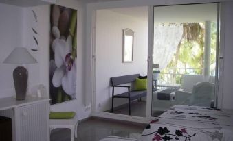 (Text automatically translated) Excellent quality / price ratio for a beautiful studio in a gated (with guard) on the site of the Auberge de la Vieille Tour (4 stars). At the heart of a tropical garden, the beach under your eyes halfway between Basse-Terre and Grande-Terre, an ideal position to take advantage of the charms of Guadeloupe and the surrounding islands. This beautiful studio has an area 41 m2, 10 m2 terrace.Brand new kitchenette and installed on the terrace (fridge, microwave oven, coffee maker, toaster).About pets:Pets allowed.About checkOut:Check out before 11:00 AM.About children:Adults only.About checkIn:Check in after 4:00 PM.About smoking:Smoking is not permitted.About events:No events allowed.