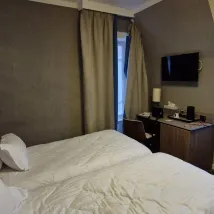 酒店地理位置優越,位於聖米歇爾山市的入口處,但不要指望能看到海灣或修道院的令人驚訝的景色。周圍建築物的屋頂遮擋了視線。 房間很寬敞而且設備齊全。浴室設有角落浴缸,但沒有窗戶。床和家具都很乾淨,但我很驚訝地看到窗台和框架被污垢弄黑了。我想把手機放在那裡拍攝日出的視頻,但我很快就被窗戶的狀況所挑戰。 酒店沒有電梯,樓梯也很窄。因此,不適合老年人或行動不便的人。 早餐有足夠的選擇,為我們服務的女孩非常令人愉快。只是有一些產品(例如,pain au chocolat)沒有補充。然而,服務還沒有結束。 我們想去餐廳吃飯,但預訂已滿。令人驚訝的是,在服務開始和中間經過那裡時,很多桌子都是空的,但我們被拒絕進入並被送到附近旅館的餐廳。