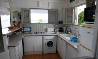 It has a private garden fully enclosed with parking and a beautiful view of the sea, facing the Caravelle peninsula. It has 2 air conditioned bedrooms, a fully equipped kitchen, a bathroom, WC, a large partly covered terrace with garden furniture, sun loungers ... on which it is pleasant to have meals, to relax while admiring the view. This bungalow has a warm atmosphere making this a pleasant place where one feels good. Moreover, it is ideally located between the north and south of Martinique, with the possibility to make beautiful hiking nearby and numerous visits: Robert Ilets, Tartane beaches, Château Dubuc of the caravel, without forgetting the beautiful southern beaches and lush vegetation of the north, and the many distilleries.