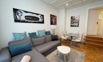 Chic terrace apartment with private parking space Box spring bed TV WLAN in Leipzig