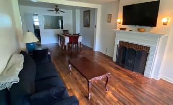 Only STEPS away from I-75 exit 113 (Paris/Lexington), this DUPLEX unit features a fully fenced back yard, 2 full bedrooms with queen sized beds, a living room with wall mounted brand new Roku TV and comfy couch, as well as a kitchen and dining room equipped with basic types of cookware and a variety of foods.