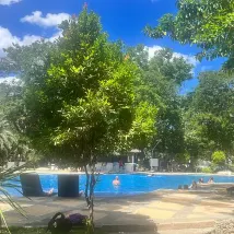 我們到達後想先吃午餐。因為帶了狗,我們被禁止在餐廳用餐(只能路過),只能坐在泳池邊。午餐的食物和服務都非常令人失望。我的義大利麵完全煮過頭了。飲料(包括我點的雞尾酒)都只是用廉價的塑膠杯裝著。所有食物都不怎麼樣。服務生告訴我們上菜至少需要20-30分鐘,我們問是否可以在(不太乾淨,因為有樹葉的)游泳池裡待一會兒。他們允許了──但要每人400比索。價格(與其他度假村和餐廳相比)也相當高。服務很差。沙灘樹也不怎麼樣。最後,我們決定換個地方住。