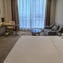 抱着試一試的心態入住這家酒店,結果體驗感真讓我挺滿意的。酒店整體的感覺比較新,不像開了幾年的酒店,地理位置選的也很好,出行很是方便。酒店內還有自助的洗衣房烘乾機,很方便,前台服務很熱情幫我升級了大房間,還送了一份早餐給我,上去走廊特別寬敞,房間的燈光也很温馨,房間很大寬敞明亮,乾淨整潔,床和枕頭都睡的很舒服,酒店的工作人員都非常熱情專業,服務很贊,管家式服務很有家 的感覺。