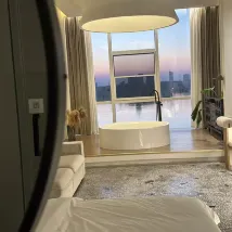 前台小姐姐服務特別貼心,一到店就給我們分享了自己的手做酸奶,外賣都是前台給送到樓上,辛苦了💗唯一一點就是空調有點冷冷,可能是因為我們那個湖景房兩大面都是窗户,有一點點冷。