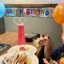 Stayed at the Lichfield Premiere Inn Saturday night after a trip to Drayton Manor for my son’s birthday. Room was clean and ready for us as a family of 4. Shower was lovely and hot. We ate at the hotel for ease with young child. The evening meal had good choice and the staff were very attentive and friendly. The chicken curry was particularly tasty. We mentioned the reason for our trip in conversation and the next morning at breakfast the staff had put up banners and balloons, a chocolate bar present and cooked a special pancake breakfast for my son. Excellent service and extra effort from both evening and morning staff.