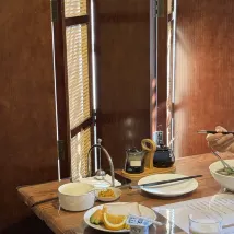 這家民宿重新定義了麗江的旅居美學。 據説由納西名門望族宅邸而改造的花園庭院,詫寂+宋風,空間設計清雅高級,將雪山與古城風貌納入眼前,全程的酒店服務無可挑剔,讓我改變了對民宿的刻板印象。 明亮潔凈的房間配了科勒全系衞浴,戴森吹風,潮牌音響,當貝投影,智能語音控制。床上用品非常整潔舒服,客房大姐打掃的特別到位。 讓人驚艷的是民宿餐飲,早餐品種雖比不上星級酒店繁多,但勝在精緻地道,廚房阿姨會現做米線餌絲等雲南主食,晚餐能預訂當地特色的耗牛土雞菌類火鍋,贈送的下午茶也相當精美可口,飲品好多選擇,有咖啡有普洱,也可以讓送到房間。 在這裏感覺整個人都變得“慢”了下來,不再焦慮,學會了享受當下的每一刻
