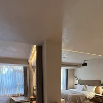 酒店服務、整潔度、房間大小都不錯 但語音助理實在不算好用,跟小迪管家講話到後面會生氣......,且電燈模式也很有限,無法控制到最適合的狀態。桌鏡好快就沒電,不太OK 另外浴室的門透明度過高,不確定是不是所有房間都是如此,但若為非夫妻/情侶出遊的組合並不適合這樣的選擇;且浴室幾乎沒有能夠好好地掛或放衣服的架子,洗澡不太便利
