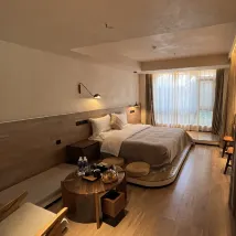 該飯店位於舊城區內,因此無法開車抵達。不過,從飯店步行到馬路只需很短的距離(可能除了老人以外),而且去老城區的許多餐飲和購物場所都很方便。飯店也安排了接送服務,幫助客人將行李從主幹道運送到主幹道。 大廳設計精美,通風良好。坐在那裡喝茶或什麼都不做都很舒服。早餐、下午茶甚至晚餐都包含在內。水果也很多。 房間非常寬敞,配有智慧控制系統。雖然房間非常乾淨,但洗手間有一股難聞的氣味。不知道是煙味還是排水管髒了造成的。 服務非常棒,尤其是在我們入住期間,夜班的男員工做得非常出色。他非常敬業,讓每位賓客都感到賓至如歸。請給他提拔或加薪。 (但是,白班還有一位男員工態度不好,讓我們感覺有點不受歡迎。因為他,我們本來會給他打低分,但夜班的男員工彌補了這一點。) (所有東西。) 最後,雖然飯店提供免費洗衣服務,但 Trip.com 上說房間裡有洗衣機,這仍然非常誤導。建議修改一下。