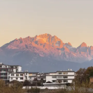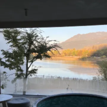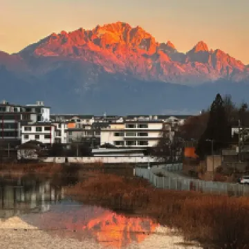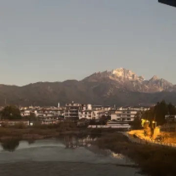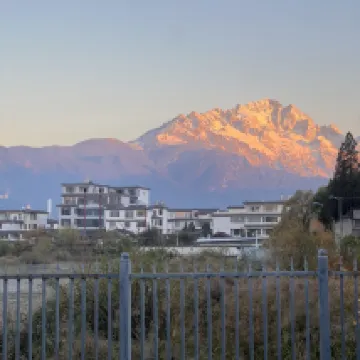 日照金山伴隨著湖景景色很美,環境清幽,早上可以沿着湖邊散步,服務很周到及貼心,遇上問題或疑問都可以請教,他們會盡量安排的。建議入住這裡可以租電單車,可以四周遊玩,不會塞車。