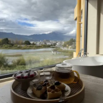 房間衞生很乾凈,每一處都佈置的非常温馨,很用心。在酒店就可以看日照金山非常美麗。早餐也非常精緻,蠻好吃的。走的早的客人還會提前準備帶走的早餐♥️非常推薦