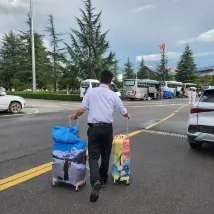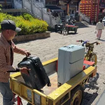 They fetch us from the car drop off point and send a Trishaw to pick up our luggage.