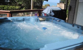 The "Ocean Overlook" is a 3 level 2,895 sq ft *4 bdrm (bed in loft) Ocean View home w/Wi-FI, Spectrum Xumo streaming to 5 large Smart TV's, 2 full kitchens, 2 living rooms, gas fireplace, w/4 decks, large covered hot tub, slate pool table, two 7' air hockey tables, two foosball tables (in 740 sq ft garage), custom built 12' play structure w/tube slide, large outside gas fireplace just blocks from casino & beach.